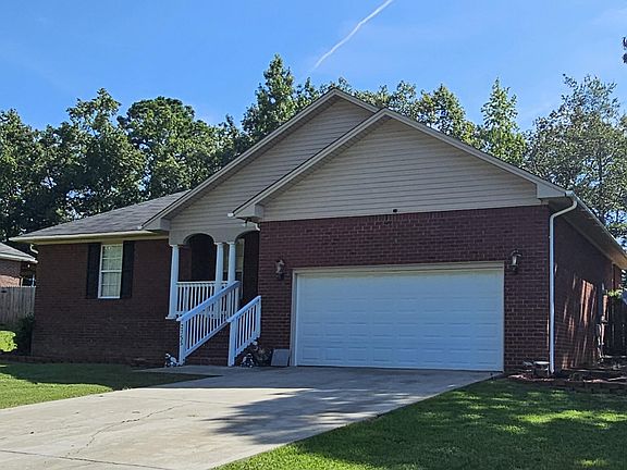 Brick ranch homeFenced lotWelcoming foyerLush greeneryFresh paintGorgeous tray ceilingEat in dining area