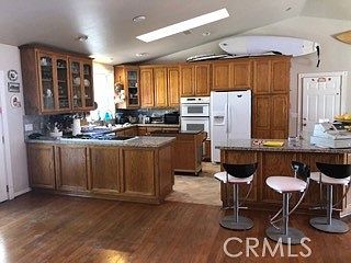 3 + 2 flag lot with a barn! This home is located in a quiet neighborhood that features a beautiful kitchen with a skylight, granite counter tops and center island, double oven and breakfast bar. This home has cathedral ceilings, an open floor plan with a brick fire place. It has large guest rooms and a huge master bedroom and tile bath. The Barn features 2 separate guest units, one is a 2 bedroom 1 bath loft, the other is 1 bedroom 1 bath loft with nice sized kitchen and living rooms! It also has a garage/work shop with extra shelving and storage space. these units are perfect for having family or guest for an extended stay. The house also features a small clubhouse for kids in front with a sink with running water and electricity. A big pool with a spa that over flows into the pool and a huge covered back patio, chicken coop and brick BBQ. There is also a big oak tree on the lot that is absolutely stunning. There is unlimited parking all around the property the house is also city water, on septic tank, solar panels on house and barn/guest living space.