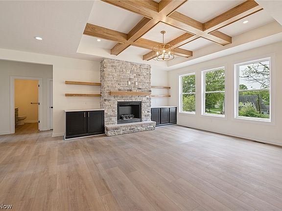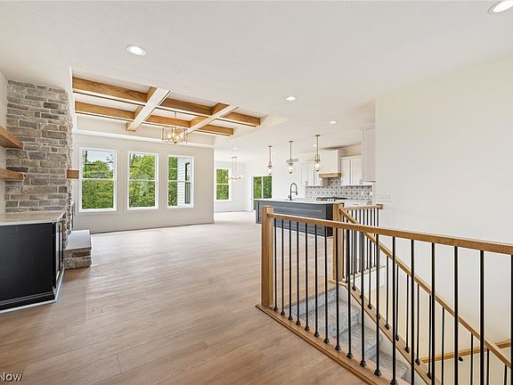 Welcome to this stunning custom ranch built by Lemmonade Homes. As you pull up admire the curb appeal of the beautiful stoned exterior, black wrapped windows, soffits, gutters and downspouts. Enter the welcoming foyer with an open basement stairwell with stained railings and black aluminum balusters. The family room has a gas fireplace with stone from floor to ceiling boasting with natural light, built ins with floating shelf accents and a 10 foot coffered ceiling. This immaculate kitchen offers quartz countertops, a 10 foot island with black kraftmaid cabinets, kraftmaid white shaker cabinets on remaining including a walk in pantry with floating stained shelves. The dining room has 4 windows with a sliding glass door overlooking the 18 x 14 covered patio. The primary retreat is 18 x 13 with a large master bath (10x9) including a walk in shower with a glass door, his and her sinks with quartz countertops and medicine/linen cabinet. The walk in closet is plenty of room to accommodate both parties (10x7). Complete with Two additional bedrooms including large closets with a full bath in between to share. First floor Laundry and a custom bench seating area to drop off bags and shoes. The garage is oversized with 3 car stalls, custom 8 foot garage doors and 11 foot ceilings with a floor drain. The basement has endless opportunities to finish with your taste and roughed in plumbing for a future full bath. Carpet in the bedrooms and luxury vinyl planked flooring throughout the remaining. Concrete drive, sidewalk from man door to front porch and patio to be poured before closing along with final grading of the yard. Taxes are not yet assessed for this home.