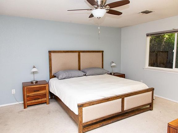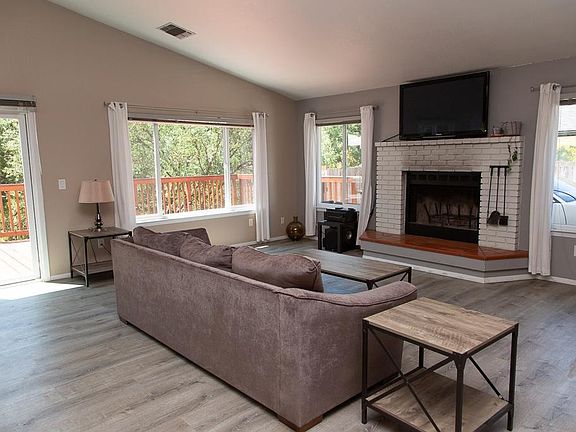 3 bedroom, 2 baths, 1,732 sq ft. with solar to offset energy costs. There is a large deck the width of the house off the back with views of a seasonal creek and large oak trees. Located on a quiet cul-de-sac, with 90 feet of level, concrete, RV parking large enough for any wakeboard boat or Class A Motorhome or combination thereof. There are 50 amp and 30 amp hookups, extra deep, 2 car garage. The large primary bedroom has dual sinks in the bathroom with a separate toilet and shower/large bath combo.