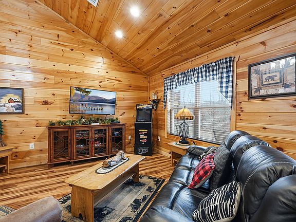 Ready for a place where the whole family can slow down and reconnect? This warm and welcoming one-level cabin in Smoky Cove Resort is designed for easy, memory-making mountain getaways. The comfortable layout keeps everyone together, from relaxed mornings on the covered rocking chair porch to evenings spent grilling and eating together on the back patio while the kids play games in the yard. Inside, two cozy bedrooms offer space for everyone, and the log bunk beds are sure to become the kids' favorite spot after a day of fun. When it's time to unwind, slip into the hot tub under the pergola and let the mountain air do the rest. Easy access with level parking and no steep roads makes arrivals simple for families and guests alike. Smoky Cove Resort offers an outdoor pool, pavilion picnic area, and fire pit gathering space, all just minutes from the attractions, restaurants, and shows in Pigeon Forge. Whether it becomes your own family escape or a place your guests return to year after year, this cabin is all about making time together the best part of the trip.