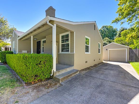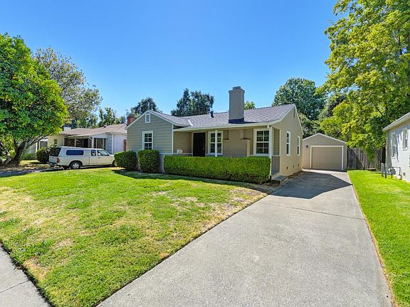 Welcome to this beautifully updated Land Park cottage on a quiet court! This charming 2-bed, 1-bath home features an inviting living room with a cozy fireplace and abundant natural light. The kitchen was fully redone with gray shaker cabinets, quartz countertops, deep stainless sink with pull-down faucet, gas range with griddle, vent hood, new disposal, updated lighting and outlets. The refreshed bath offers a new tub, quartz surround, toilet, vanity with sink and faucet, plus new lights and outlets. Bedrooms include new ceiling lights, outlets and window A/Cs. Throughout the home: waterproof laminate flooring, new baseboards, interior paint, updated lighting/outlets, and a new Rheem water heater. Big-ticket items, too: 2021: sewer improvement by US Trenchless, new roof by Harlan Roofing, exterior paint by D&P Painting, and Milgard dual-pane windows by Southgate Glass; 2023: new wall furnace by Jaguar Heating. Enjoy a large backyard with mature trees, patio, and a detached garage with long driveway. Minutes to downtown, dining, shopping and freeway access classic 1940s charm with modern comfort!