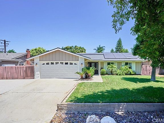 Beautifully updated single level 3br, 2ba home in La Verne with paid off solar! This gorgeous property boasts lush lawns, and mature trees & foliage that lead to a sophisticated leaded glass entry door with side lites. The interior showcases a light, neutral color palette, with wood laminate and tile flooring, fresh paint throughout, recessed lighting, vaulted ceilings and plantation shutters. The large living room features a creamy brick fireplace, and views out to the perfectly manicured yards. The gourmet kitchen is just what your inner chef desires, with custom cherry cabinetry, a vast amount of prep surface and gleaming stainless appliances. The East wing of the home has three private bedrooms and two remodeled baths, including the oversized primary, and attached en-suite with walk in shower. The back yard is an entertainers dream, complete with covered concrete patio, all block walls, rolling lawns, a variety of mature shade trees, a hot tub ready slab complete with electric and water, and gated RV parking. The roof installed in 2021, upgraded insulation and professional air sealing, tank less water heater, updated windows throughout, paid off solar, incredible Bonita schools, wonderful neighborhood and walking distance to historic down town La Verne and the University, make this an incredible place to call home!