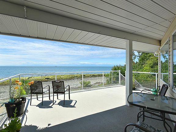 Drive down the tree lined driveway of this 1.39 acre low bank waterfront property to a serene coastal retreat where tranquility and natural beauty meet. The main home, a rancher with basement, rests at the water’s edge and showcases a bright, open layout with sweeping ocean views from the primary bedroom and all main living spaces, including the lower level. Watch boats passing by and eagles soar, enjoy long walks on the beach or relax with breathtaking sunsets by the shore. A charming two bedroom ocean view cottage offers income potential or room for family. Surrounded by mature landscaping, vibrant flowers, berries, fruit trees and raised garden beds with irrigation and rainwater capture system. The 66' road allowance to the west adds extra privacy. This is coastal living at its finest.