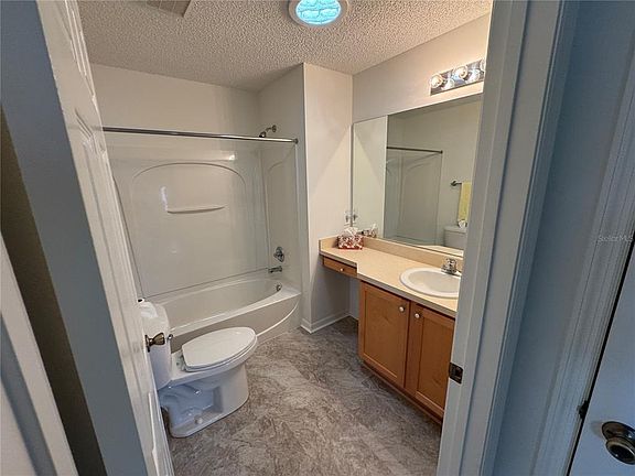 This beautifully maintained Austin model home offers thoughtful upgrades and is move-in ready! The two-car garage with a golf cart garage features a utility sink and washer and dryer. A long driveway welcomes you, complemented by mature landscaping and a quiet street location. Inside, enjoy Pergo flooring throughout the main living areas, tile in the bathrooms, and plush carpet in the bedrooms. The kitchen is a showstopper with quartz countertops, a gas stove, microwave, dishwasher, large corner cabinet for extra storage, and a skylight that floods the space with natural light. A breakfast bar with bar stools makes it perfect for casual dining. The custom master closet, Murphy bed with bedroom set in the guest room, and ceiling fans in every room provide both style and function. Relax year-round in the enclosed lanai under AC or enjoy the open lanai with ceiling fans. Additional highlights include a hot water heater (2017) and fresh interior paint. The yard is beautifully landscaped and well-maintained, with trees recently trimmed to enhance the home's curb appeal. This home is conveniently located just minutes from Arnold Palmer Country Club, numerous shopping and dining options, and all of The Villages’ world-class amenities including championship and executive golf courses, pickleball and tennis courts, recreation centers, fitness facilities, and countless clubs for every interest. Low bond. Golf cart NOT included but for sale. Inquire.