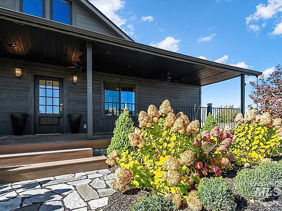 Immaculately kept modern ranch home on 1.74 acres, professionally landscaped, 3 bedroom 2 bath split bedroom, large open living area open to kitchen with island, LVP flooring throughout, quartz counter tops, with large farm sink, large pantry, tile showers, 2 X 6 Construction, custom Anderson windows throughout, large Trex covered patio, 42 X 25 attached garage with work space, 220 for RV hookup, and drive through 3rd bay room for all your toys, brand new storage shed, full automatic sprinkler system, stone patio, garden space, pasture area, private well, No HOA or fees, light CC&R's Irrigation water is from well.