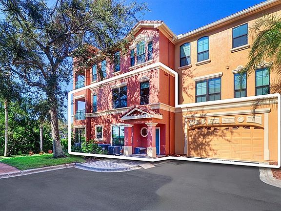 Fabulous two story "Villa San Pietro" corner townhome in the gated waterfront condominium community of The Grand Bellagio at Baywatch on Old Tampa Bay!! Mediterranean style and grace is yours as you enter through the 24-hour guard pavilion with Italian fountain to your Bellagio enclave. Features 2078 heated square feet with unobstructed water views; 3 full bedrooms, 2 full and one 1/2 baths; screened porch on first floor, terrace/balcony on second floor off primary suite; small loft for study area or small office with attached oversized two car garage. Crown molding in living, dining and family rooms, kitchen, foyer and primary suite. Kitchen has all wood cabinetry, gas stove, all stainless steel appliances, granite counter tops. Cafe plantation shutters on all breakfast nook and family room windows. Full size washer and dryer in laundry area; under the stairs storage; tile flooring throughout. Primary bedroom with gas fireplace and built-in entertainment center and small sitting area; en-suite features updated his and her separate vanities, garden tub, separate shower and a large walk-in closet. Community amenities include 6800 square foot social villa; club room; conference room; billiards room; 24 hour fitness center; geo-thermal heated pool and spa; poolside cabanas with chairs, chaise lounges, loveseats and patio coffee tables; umbrella tables and chairs; redwood sauna; 1 1/2 mile lighted waterfront promenade; tennis court, sand volleyball and playground; outdoor charcoal BBQ grills in front of each building; car care center with wash and vacuum and small area dog run. Three pavilions that are anchored at the ends and middle of the marina with a gazebo at the tennis/volleyball courts and one at "The Point" in front of Building 13 on the open waterway. The "Marina" known as "The Docks at Bellagio" is a separate condominium community under F. S. 718 with condominium boat slip fees. Boat slips can accommodate up to a 50 foot yacht; has water & electric. Currently the 3 Grand Bellagio pavilions and the common areas and boat slips in "The Docks at Bellagio" are under renovation and not available to access. Please note photos of the 3 pavilions and marina were taken prior to the renovation project and are not guaranteed to be "as built" once the renovation construction is completed. All room sizes have been measured for the floor plan in the photos but are deemed to be approximate. NO AIRBNB - NO SHORT TERM RENTALS. The Grand Bellagio is designated by the City as a "residential condominium community" with a minimum rental period of 7 to 12 months. Purchase your Florida resort home today.....