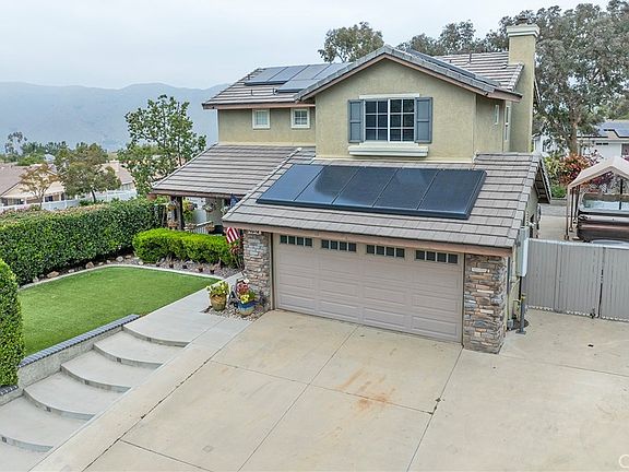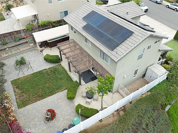 LARGE LOT | RV PARKING | SOLAR W/CHARGING - For your consideration is the popular Whitney floorplan in the picturesque hillside community of Horsethief Canyon Ranch. 3bd/2.5ba plus a loft that can also be used as a master bedroom retreat or 4th bedroom. Current owner has been in the property for over 22 years and pride-of-ownership shines throughout. Laminate flooring and plantation shutters can be found on the first level. Updated kitchen features premium granite countertops, full granite backsplash, custom cabinets, and a full suite of GE stainless steel appliances. The family room boasts a large media niche for your modern flat-panel TV. The same decorative granite from the kitchen can be found on the media counter and on the fireplace face panels and hearth. Indoor laundry room has plenty of space for shelving and storage and the guest bathroom has an updated vanity and fixtures. Upstairs there are two good-sized guest bedrooms and a multi-functional loft. The updated guest bathroom has a nice dual-sink vanity. The master bedroom has a vaulted ceiling and calming views from all windows. The master bathroom has been fully upgraded with an oversized tile shower with dual shower heads. The master closet has two levels of shelving to maximize the space. Stay cool in the summer with ceiling fans throughout the home, (3) Quiet-Cool whole house fans, and an updated Lennox HVAC system. Rheem water heater is newer. Home has a 1 year-old 10kWh solar system w/battery backup with excellent lease terms. The house has an upgraded electrical panel and a pair of 20A dedicated circuits in the garage. There is a 240v 50A receptacle on the side yard that powers the jacuzzi and can be used to charge an RV or EV. The larger side of the property has 11'x30' RV parking as well as a raised 14'x8' raised pad for the optional jacuzzi. The opposite side yard has a gated dog run. Low-maintenance backyard has just the right balance of greenery, potted plants, & planters and hardscape and brickwork. The front artificial turf front yard is nicely protected by mature shrubs so that you can privately enjoy your favorite cup of coffee while relaxing on the large front porch. HCR is a great family community with a K-8 school, soccer, dog park, and baseball fields. There is easy resident access to the tennis courts, club house, gym, (2) olympic-sized pools, and several parks. Best of all there are no Mello Roos, so taxes are among the lowest in the area!