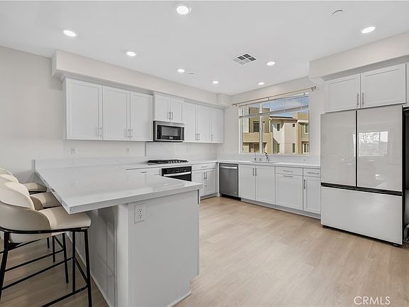 This turn-key, top-of-the-line home offers a spacious three-level layout perfect for modern living and entertaining. On the first level, enjoy a private bedroom with an attached bath, ideal for an in-law suite or guest room. Ascend to the second level, where you will find a stunning kitchen and family room with breathtaking views in a prime location within this beautiful community. The kitchen is a chef's dream, featuring high-end appliances, energy saving upgrades, LED lighting, and fully paid-off solar. The third level hosts a second bedroom with full bath, plus an expansive primary suite with a luxurious spa tub, dual sinks, a connecting shower, and a walk-in closet, the ultimate retreat! You'll absolutely love the high ceilings, recessed lighting, beautiful hardwood floors throughout, and a spacious two-car garage. Enjoy resort-style living with a clubhouse, multiple pools, spa, playgrounds, barbecue areas, and scenic walking trails. Every detail has been thoughtfully designed for comfort, style, and effortless living. YOUR PERFECT SANCTUARY AWAITS!