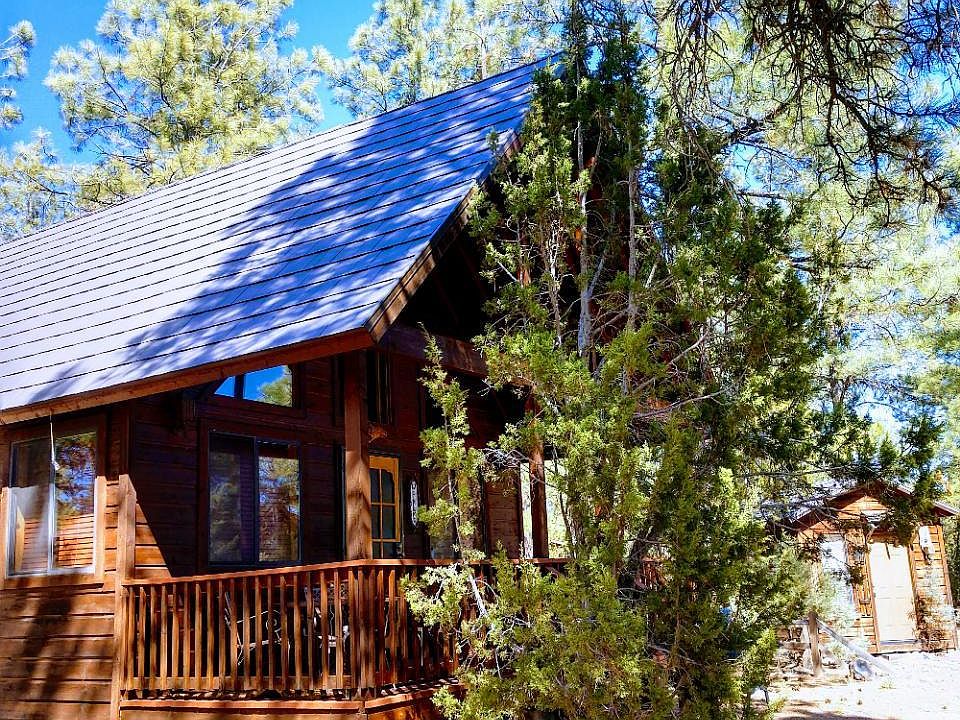 At the end of Elk Trail in the popular Mogollon Resort Cabins you will discover this charming cabin nestled in the pines. Perfect place to relax on the front covered porch and enjoy the sound of the breeze through the trees. This home offers all you need for a perfect summer getaway or if you are looking to downsize your lifestyle. Downstairs has the open concept kitchen/living room with gas fireplace, tongue & groove ceiling and knotty pine paneling throughout the cabin for that comfortable woodsy feel. Stackable laundry is in the bath. The upstairs loft serves as the second bedroom or it could also be a bonus room office, etc. The cabin sits on one of the larger lots in and at the back of the subdivision. The home has been stained in the last two years and the