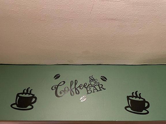 Fully stocked kitchen with cookware, dishes, utensils, coffee maker & more