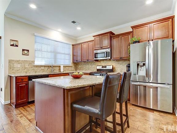 LOWEST PRICE RANGE FOR SINGLE FAMILY HOMES IN EXTREMELY POPULAR BELLA CASA! Versatile floorplan can be 4 bedrooms or 3 bedrooms and a bonus. Screened porch opens into fenced backyard. Backs up to common HOA area. 1st Flr master suite. Note size of bedrooms. 2 walk in storage areas! Tankless hot water heater. upgrades in flooring and granite. Gas range! Thermostat controls on both floors. Popular Bella Casa offers swimming pool, other amenities, close to Apex nature park and community park.