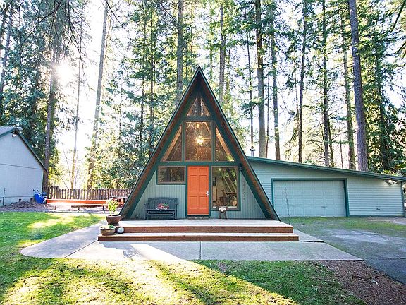 Beautifully remodeled "A Frame" style home right across from the river in the quiet city of Eagle Creek. You will love the 30 acres of maintained walking trails right across the street from the home along with a private beach on the Clackamas River on the opposite side of the street! This home includes 3 bedrooms & 1 bathroom with 1,440 SF sitting on almost a half acre! It includes a huge detached shop with 3 bays and electricity. Home has a newer roof, hot water heater, heat pump & plenty more!