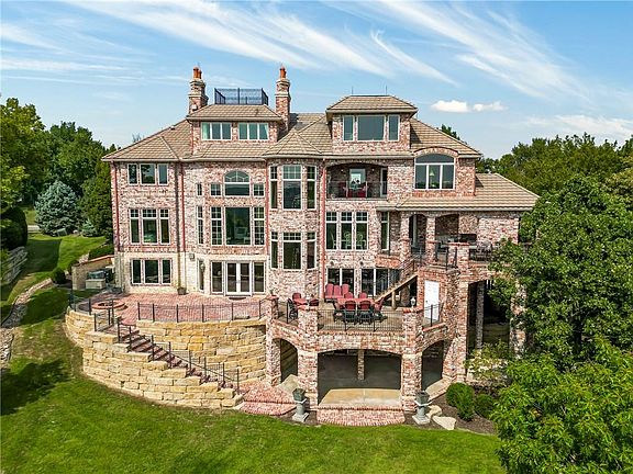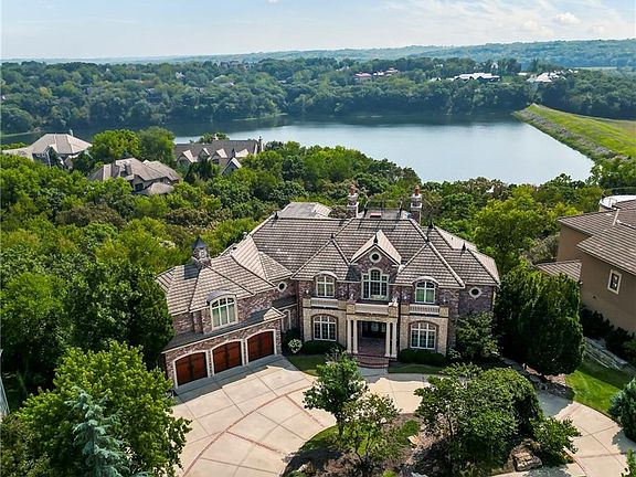 Incomparable custom home designed by Scott Bickford, meticulously built by Charles Kraft, with tranquil views of Shadow Lake & majestic vista's overlooking the Cedar Creek valley! Many recent updates include a completely modernized theater room, new light fixtures & electronics. This phenomenal 5-level property features extensive Brazilian Cherry hardwood floors! Main floor includes a stunning 2-sty Great rm w/FP, formal dining, Den w/FP, spacious guest suite, fabulous kitchen & casual dining space. Dream kitchen features 3 Gaggenau ovens, separate wood front Bosch fridge & freezer, massive walk-in pantry & mud room, twin GE Profile DW's & a 6-burner gas Dacor range! 2nd floor features a spectacular owners suite w/marble bath & FP, custom walk-in shower, expansive walk-in closet, exercise room, sitting rm. w/adjoining covered deck, built-ins include a dry-cleaning unit, mini fridge, DW, microwave & vanity w/sink! Three spacious bedrooms all w/private baths & walk-in closets share a versatile loft space. The 3rd floor boasts a spacious recreation/game room & a home office, both enjoy the most dramatic views you could ever imagine! The finished walkout LL starts with a large Family rm w/stone FP, walk-behind wet bar w/triple Sub Zero fridge, freezer, wine fridge, Miele beverage center, game room, 2 additional guest bedrooms, full bath, walk-in Safe rm. & topped off with a 22 x 19 tiered Home Theater retreat. Step down to the basement level to a 30 x 25 indoor basketball court w/20 ft. ceilings & climbing wall, which could be converted into an incomparable golf practice space! Over 1,000 sq ft of outdoor paver brick & stained concrete patio, covered outdoor kitchen & deck area w/FP & plenty of backyard area to add a swimming pool. Tile roof, circle driveway & elegant exterior brick/stone work. The finest workmanship & materials were utilized to create this truly exceptional residence. Potential option to enroll children in the Olathe school district if preferred.