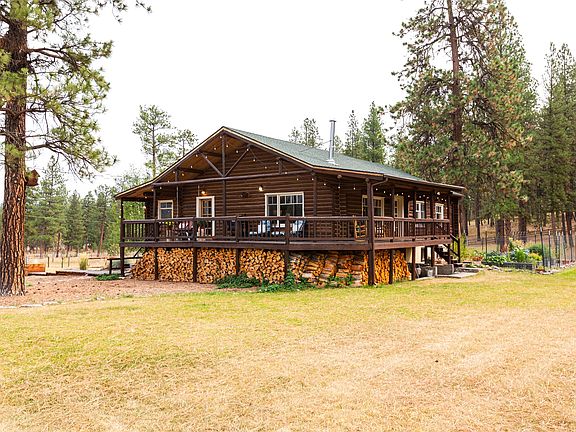 Discover a rare opportunity in Potomac Valley to own a home that feels like a vacation home. This log home sits on 20 acres with stunning 360-degree mountain views and Blixit Creek running through the property. Step inside to find reclaimed wood floors, trim, and cabinetry throughout, creating authentic Montana character. The custom kitchen features quality finishes such as travertine counters, large solid travertine sink, and 5-burner Bertazzoni gas range. There are large windows throughout to enjoy the gorgeous view. A large wrap-around deck extends your living space outdoors, perfect for entertaining or quiet mornings with coffee. The property includes a garage and abundant storage throughout. Recent updates include new roof, propane system, water heater, and generator - this property is move-in ready. Twenty usable acres provide endless possibilities whether you're seeking a family retreat, equestrian property, or simply a place to call home. Ten to twelve cords of seasoned firewood convey with the sale. The property includes a corral with a new pole barn and an additional barn for tack, hay, and feed storage—everything needed for horses or hobby farming. 5 fully fenced pastures. With state land just minutes away, you can ride directly from your property. The established garden features a tall deer-proof fence and raised beds ideal for flowers, fruit, and vegetables, complemented by two convenient garden sheds for storage. Enjoy complete privacy while maintaining easy access to Missoula's amenities. The property offers that rare quality every buyer knows when they feel it - the moment you arrive, you're home.