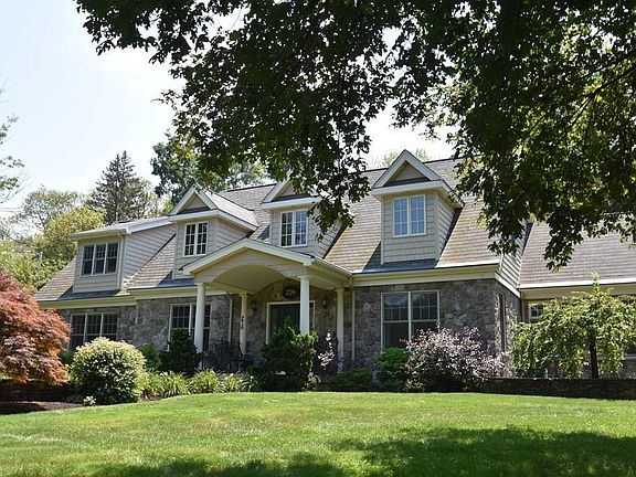 Absolutely STUNNING! Come fall in love with this custom-built 2006 Stone & Shingle Cape, majestically sited on a 1.3+ acre estate-like setting! Truly rare in it's outstanding craftsmanship, exquisite design & superior material choices. With over 3600+ SF of luxury living, this dream home offers a grand 2 story foyer, designer kit. with beaut. cabinetry, SS appliances, granite counters, blt-in buffet area, 2 sinks & a fplc'd eat in area! Entertain-away in the 27x22 fplc'd great room, perfect for pool tables & big screen tv's! Relax in the inviting fplc'd lvgrm & host dinner parties in the captivating dngrm! A butler's pantry & custom bar area w/wine chiller & ice maker make this home rock! 1st flr bdrm & full bathroom option, a 2nd staircase & handsome hdwd flrs & rich millwork/molding will astound. Indulge in the 27x25 Master suite retreat! Multiple closets, a sitting area & an elegant spa bathrm w/whirlpl tub, shower w/2 heads & twin vanities is pure luxe! C/A, Sprinklers, Alarm