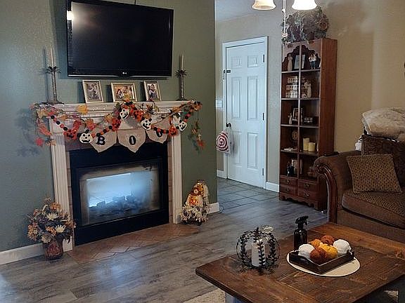 This two level home in the heart of Forsyth is move in ready! Upstairs features master suite with double vanity and jacuzzi tub, two more bedrooms and another full bathroom, living area, dine in kitchen, large pantry,see through fireplace between the living area and kitchen, laundry closet, and large deck off of the kitchen. Downstairs features a non-conventional bedroom (could be used as a private office space), 1/2 bathroom, two living areas, a game room with built in wet bar (pool table can be included), and a propane fireplace. The home has a large back yard surrounded by trees and a privacy fence, included is an above ground pool with large pool deck,pavilion and storage trunk, RV parking pad with water and electric hookups, and small metal storage shed.