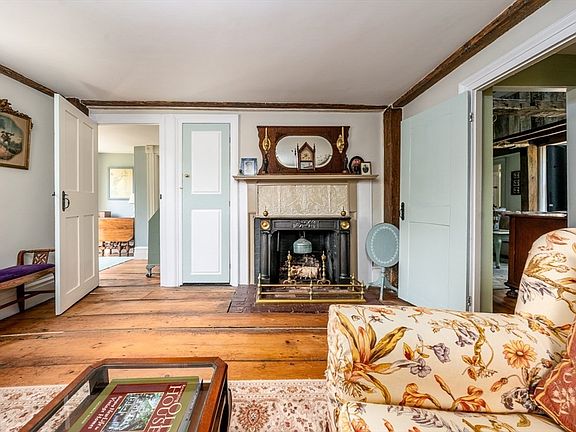 Passionately restored 1755 homestead known as the Caleb Perry House, located in historic Bourne, .5 miles from Monument Beach. Perfectly perched on 2.1 acres surrounded by a private oasis of lush gardens and natural habitat. Flexible one level living with 12 well-proportioned rooms, providing the perfect blend of historic elements and modern amenities. Thoughtfully updated kitchen, renovated bathrooms, and new mechanicals, including upgraded electrical, new 3 zone central AC and heat, new hot water heater, and new full house back-up generator. Vaulted ceiling in main living room with exposed beams and one of three working fireplaces. Primary suite with walk-in closet, renovated bath, and new laundry. Abundant storage throughout including attached barn/workshop and detached garage. Rarely does a preserved and upgraded home of this vintage come along.