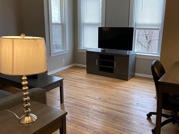 Amenities including gas heat. off street and dedicated parking, hardwood in the living room, new laminate flooring throughout bedrooms & kitchen, quiet neighborhood. Income must 3.5x the rental amount.