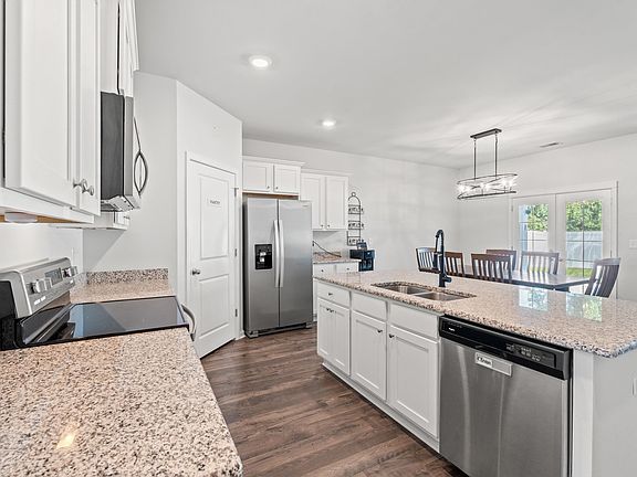 Adjoining dining areaEn-suite bathroomLarge pantryBreakfast barInviting open floor planFunctional layoutModern kitchen