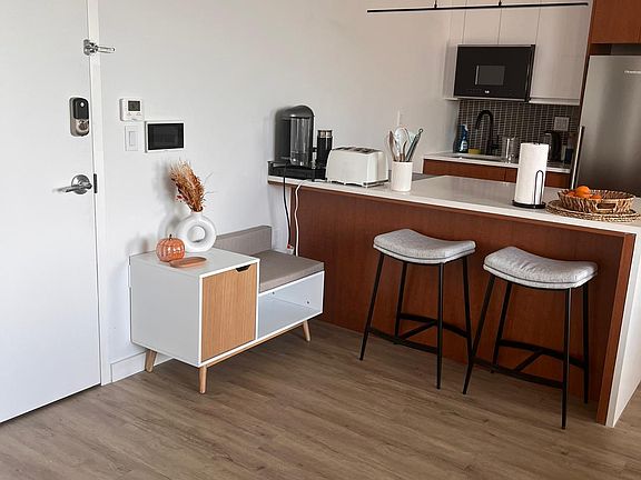 Spacious bedroomHigh ceilingsBlomberg stainless steel appliancesWide-plank flooringQuartz countertopsExcellent closet spaceCustom two-tone cabinetry