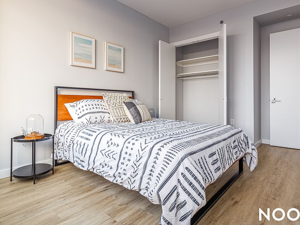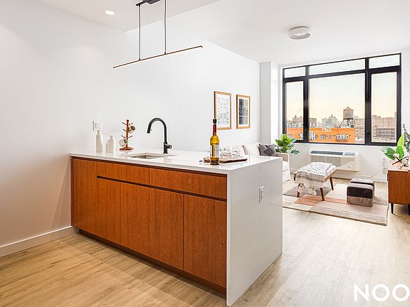 Designer 1BR with chef's island kitchen + skyline views. Full-service luxury building just 15 minutes to Midtown via 2/4/5 trains.