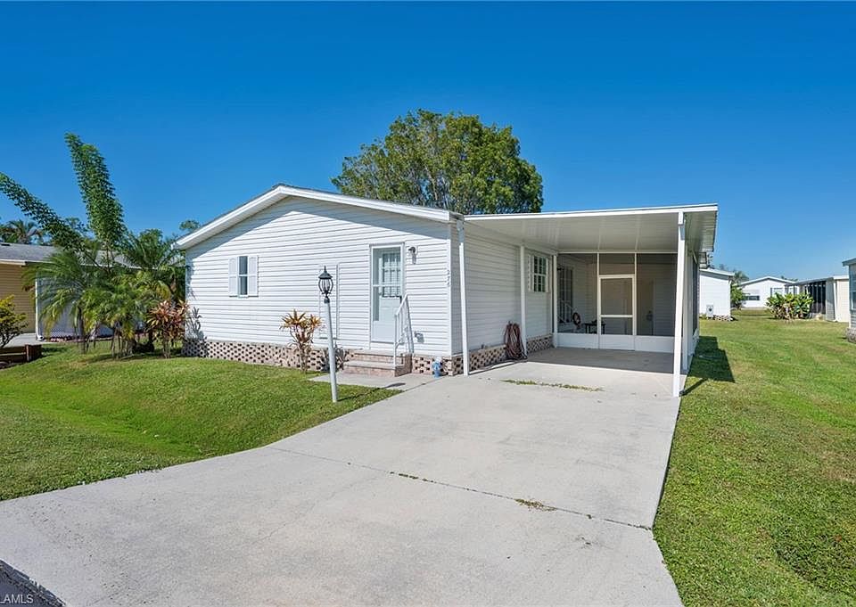 Discover Quail Roost, a hidden gem tucked just off US-41, featuring a welcoming neighborhood of 142 homes. A rare find—you own the land here. That’s right—no lot rent, and no 55+ age restrictions. Ideal for a 1031 exchange, a seasonal retreat, or a full-time Florida residence. This charming 3-bedroom, 2-bath home (built in 2000) offers an inviting open layout with vaulted ceilings, creating a bright and spacious feel. The split-bedroom floor plan ensures comfort and privacy for guests. The kitchen provides generous cabinet space and room for a dining table or cozy breakfast nook. The primary suite accommodates a king-size bed, features a walk-in closet, and includes an ensuite bath with a jetted tub, separate shower, and linen closet. Recent upgrades include new vinyl flooring (2023) and a carport added in 2021. Sliding doors off the dining/kitchen area allow natural light to pour in and provide convenient access for indoor-outdoor entertaining. The laundry is located inside the home, and an attached shed offers endless possibilities—storage, workshop, craft room, man cave, or she-shed! Enjoy the Florida lifestyle on the screened-in lanai, perfect for sipping your morning coffee or unwinding at sunset. Have a boat, RV, or trailer? The community provides a dedicated storage area for all your toys. Golf carts are welcome too! Residents enjoy fantastic amenities including a saltwater pool, clubhouse, picnic/BBQ area, and more. The low HOA fee includes: cable, lawn/land maintenance, community management, recreational facilities, trash removal, sewer, and water. All of this in a prime location—just minutes to Downtown Naples, 5th Avenue, Marco Island, and a nearby public boat launch. Quick access to I-75 makes travel effortless.