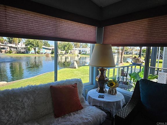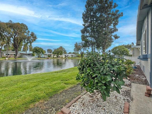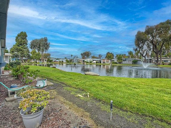 Home has a stunning lake and green belt view. There is a Large deck for relaxing with water view. Features an open floor plan that entertains a feeling that you are in a resort. Large picture windows. Kitchen opens to a dining room that leads to a large living space. Bathrooms have been updated and home throughout is same, with convenience and peaceful living space. Updated paint and wonderful decor thru out. One year old washer and dryer This is a must see in a senior park called Laguna Vista Mobile Home Estates where nature abounds . A gated community located close to freeway, shopping. Beach is to the west by freeway. The complex has a parklike setting with lakes thruout. Shed in Carport and pleasant sitting arrangement.