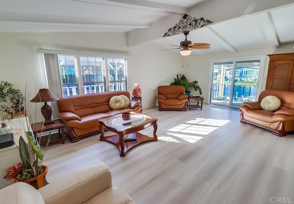 No Property Tax – Rent-Controlled 5-star 55+ Laguna Vista Estates Wake up to stunning lakefront views in this 2,040 esf home on an oversized lot. This beautifully designed home features 2 spacious primary bedrooms with ensuite bathrooms on opposite sides for maximum privacy. The open floor plan boasts vaulted ceilings, an oversized living room, and a mini bar area with direct access to the backyard porch overlooking the lake. The remodeled kitchen is a culinary haven, complete with quartz countertops, new stainless steel appliances, gas stove and ample cabinetry. Additional features include: • Separate formal dining and family rooms • Hawaiian ceramic tile entryway • Vinyl flooring throughout • Ample closet space with mirrored doors • Updated bathroom 1 offer dual sinks, granite counters, walk-in shower & soaking tub • Updated bathroom 2 has quartz counters and a walk-in shower • Separate laundry room with washer, dryer, sink and storage • Ceiling Fans throughout • Drywalled walls The two-tandem car carport includes privacy shading, and the interior and exterior have been recently painted. Enjoy a year round resort at the 5-star community of Laguna Vista Estates! They offer weekly activities, community gatherings, movie nights, holiday celebrations and more! Amenities include ceramics, shuffle board, pool/spa, clubhouse, billiards and pickleball courts Located just 4 miles from the beach, this vibrant community combines luxury, relaxation, and affordability. Monthly fees: $810 base rent + utilities