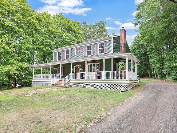 Welcome to this expanded Colonial home set on over 3 private acres across from The Farms Country Club. From the charming front porch to the spacious interior, this home offers room to relax, entertain, and grow. Highlights include a bright kitchen with Australian Cypress wood floors and tongue-and-groove ceiling, a freshly updated family room with cathedral ceilings and roughed in plumbing for a wet bar. A spacious living room featuring hardwood floors, wood stove insert, and bow window. Two guest bedrooms, a full bath with whirlpool tub and a mudroom with laundry area complete the first floor. Upstairs you'll find a spacious primary bedroom suite plus two additional bedrooms. The additional full bathroom upstairs has been recently updated. There's a finished loft with access to a spacious deck above the garage which is heated and air conditioned, perfect for a game room or studio. Some other highlights include an approximately 15 year old roof (50-year architectural shingle), new pool liner with 5-year warranty, new pool pump, and a newly added millings driveway. City water available on the street in the event the new buyer desired to convert. Enjoy privacy, updates, and a prime location across from the country club, and with easy access to Route 15, Wallingford's Train Station, Oakdale Theater and more - this home truly has it all! Schedule your showing today!