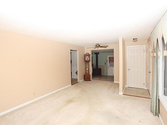 Bring Home Happiness in this easy to manage Ranch with low maintenance exterior siding and a terrific floor plan.Charming front porch w/ vinyl railings welcomes you into this lovely home's Living Rm flooded in sunlight from the large Bay window.You could also enter through the 2.5 car garage into the convenient breezeway & be warmed up instantly by the wood burning stove.Spacious eat in Kitchen is open to the Breezeway & the Living Rm & features plenty of white wood cabinets.Three spacious bedrooms with nice size closets & ceiling fans,a large full bath and plenty of additional storage space found throughout.Basement is partially finished with a large bar perfect for entertaining friends & family anytime!Newer furnace approx 10 years old.Roof approximately 10 yrs old.Conveniently located!