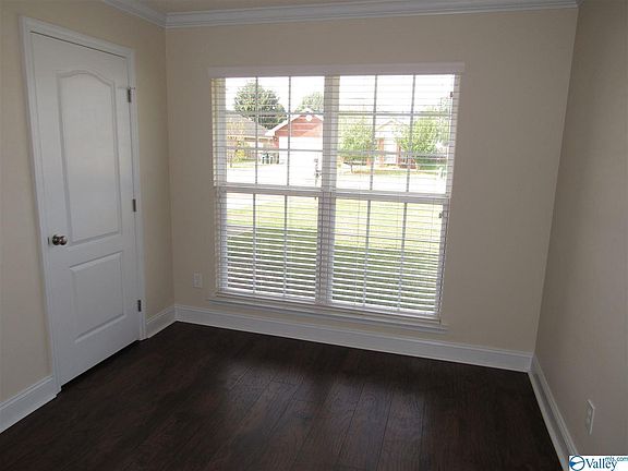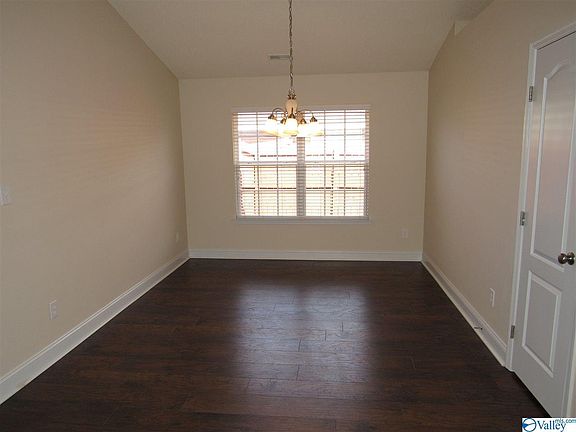 Beautiful Open Floor Plan all on one level. Gorgeous wood flooring thruout. NO CARPET Isolated Master Bedroom. Kitchen open to Family Room and Dining Room. Covered back porch. Convenient to Redstone Arsenal, I-565, and Publix.