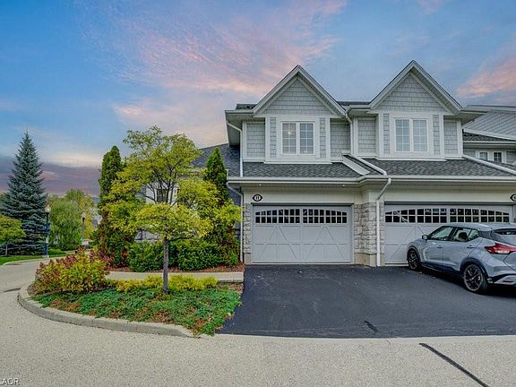 Bright and spacious and beautifully finished executive end-unit townhome in The Villas of Grand Chicopee offers refined living with space for the whole family. With stunning stonework, shake and shingle siding, and professional landscaping, the exterior makes a lasting first impression. Step inside to a soaring two-storey foyer filled with natural light, featuring large windows and an elegant oak banister that sets the tone for the rest of the home. The main floor boasts a sunlit, open-concept layout with a welcoming living room complete with oversized windows, hardwood flooring, and a cozy gas fireplace. The adjoining kitchen is both stylish and functional, offering granite countertops, a neutral tiled backsplash, ample cabinetry, a breakfast bar for casual dining, and sliding doors that open to a spacious, private patio—perfect for entertaining or relaxing outdoors. Upscale architectural details, including crown moulding, add character and sophistication throughout. The main-floor primary suite features large windows, a walk-in closet, and a well-appointed 4-piece ensuite with a glass-enclosed shower and a luxurious soaker tub. Additional main floor highlights include a 2-piece powder room and convenient laundry area. Upstairs, two generously sized bedrooms, a full 4-piece bath, and a charming open balcony overlook the foyer, creating a bright and airy upper level. The unspoiled basement, with oversized windows, offers fantastic potential for future living space. A roomy 1 car garage adds convenience and storage. Nestled in a tranquil, natural setting just steps from the scenic Walter Bean Grand River Trail, this home also offers quick access to major routes, making it easy to reach all amenities. A perfect blend of comfort, style, and location—this is executive townhome living at its best. Explore the paths of nature Chicopee has to offer while being minutes from shopping, restaurants and highway access.
