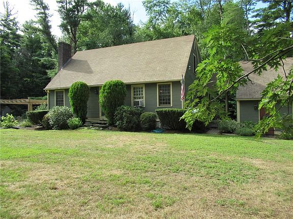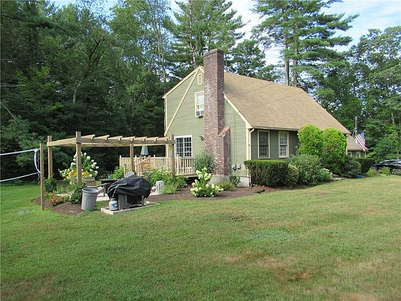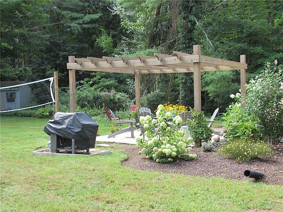 This reproduction cape sits on a corner lot with over two private acres. The home has hardwood pine plank flooring. Eat in farmhouse style kitchen with a hammered copper sink and granite counter tops. Bathrooms have been recently updated along with appliances and other features of the well kept stylish home. Den/possible fourth bed on first floor. Recreation room in finished basement. The yard is well groomed with a perennial garden and pergola patio and deck.