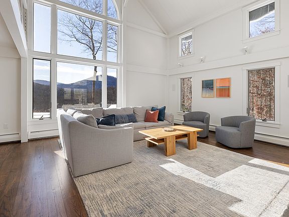 Vermont stone fireplaceRefined living spacesExpansive mountain viewsTwo versatile loftsBluestone patioBonus roomCustom post-and-beam retreat