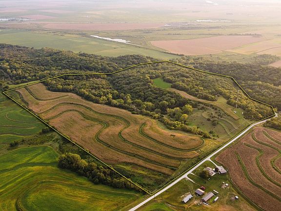 Whitetail Properties Real Estate is proud to offer a rare Southwest Iowa Loess Hills combination farm with income, recreation, and hunting potential. With paved access from Bluff Road and gravel frontage on 286th Street, this property features three gated entrances and an internal trail system for excellent access. The farm includes 44.53 FSA tillable acres, with 35.87 acres in production, one acre in a clover food plot, and the balance idle but farmable. Soils average an impressive CSR2 of 73.5, with consistent yields of 220–240 bushels of corn per acre. Terracing is in place, and natural openings provide chances for additional food plots. Mature hardwood timber includes valuable black walnut, oak, hickory, and cedar, offering future harvest or income through a hunting lease. The property is renowned for its big whitetail history and sits in coveted Zone 3 for non-resident tags, with strong populations of turkey, small game, and predators. Beyond hunting, the property is ideal for ATV riding, hiking, camping, or horseback riding. Water and electricity are on-site, with a small cabin and potential homesites offering privacy and stunning Loess Hills views. A true turnkey Southern Iowa farm, available just in time for hunting season.