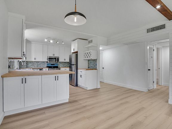 LIKE NEW, prime Boca Raton BEACH AREA location, this quality renovated with BUILDER WARRANTY one-story custom corner residence has 2 easy BEACH ACCESS areas nearby! Cozy open ''social'' kitchen island with new stainless-steel appliances, and sink, including washer/dryer inside! New a/c, closet organizers, reframed rooms, smooth coated walls and ceilings, Butcher Block countertops, shaker style cabinets, water closets, backsplash ''shiplap'' great room wall, ceramic and luxury vinyl tile flooring, lighting, cabinets, bath vanities, trim, baseboards and almost everything! Spacious outside common areas for this private corner residence and upgraded buildings with impact glass, newer roofs and newly painted buildings NO PENDING ASSESSMENTS! See it and own it NOW! BUILDER PROVIDES ONE YEAR WARRANTY