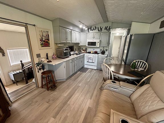 Located directly on the St. John's River, in the quiet community of Riviera Resort and Marina, you will find this beautifully updated manufactured home. One bedroom and one bathroom. Plus additional space for a bedroom, office, or living space at over 250 sq. feet. Recent 2023-2024 updates include a new roof, air conditioning, a remodeled kitchen and bathroom, and new vinyl flooring has been installed throughout. Custom built-ins have also been added throughout the home, providing tons of additional storage space. The enclosed patio area has also been completely remodeled from floor to ceiling. The remodel was done to provide extra protection from any unwanted water. The feeling of security knowing your family is protected is something you wont find in other homes. New washer and drier hookups have been installed, and all of the appliances will be staying. You can fish from the riverbank or relax on your covered patio area on which you can watch beautiful sunsets, sunrise, and rocket launches! The Riviera Resort and Marina offer a pool, pavilion, clubhouse, fish cleaning station, and common seating areas for all to enjoy. You can rent dock space with or without a boat lift directly through the marina. The Land Lease fee for this home is $725 per month. This includes water, sewer, trash, cable TV, Internet, and lawn care. Pets are allowed under 30lbs, 2 per unit, cats and dogs only with breed restrictions. Also available is a 2006 EZGO GOLF CART that can be purchased with the home. Close to SunRail, medical facilities, shopping, and restaurants. Give us a call today, you will be glad you did!