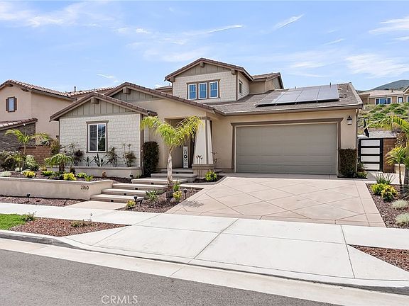Welcome to the luxurious gated community of Sierra Bella in Corona! This pool home provides beautiful views of the Inland Empire, as well as high-end upgrades throughout. The entry sets the tone for the rest of the home. Natural light shines through and illuminates the white shiplap walls and helps light your way into the open living space. The oversized living room is central to the home and leads into both the kitchen and the downstairs primary bedroom suite. The kitchen is a chef’s dream! Including a central island, the kitchen has plenty of counterspace, cabinetry, high end appliances, step in pantry, and built in refrigerator. The dining room is open to both the kitchen and living room and leads to the backyard through the slider. 3 bedrooms are located on the first floor of the home including the aforementioned main bedroom suite. This tranquil owner’s suite is large and has peaceful views of the backyard pool and lights. The suite includes a bathroom with dual sinks, walk in shower, soaking tub, and large walk-in closet. The other two guest bedrooms on the other side of the first floor are spacious and have a full bathroom nearby. Lastly downstairs, you have a full laundry room. The stairs in this home include upgraded bannisters that help to make the space feel more open as well. Upstairs there is a massive loft, guest bedroom and full bathroom, as well as a covered back patio that overlooks the backyard. The backyard space has been thoughtfully designed with your entertainment in mind! The large pool and spa are the main attraction with peaceful spillways and fire feature to complete the right ambiance for your evening get-togethers. Relax and unwind while you lay out on the oversized daybed. Enjoy a formal dinner with family and friends under the gazebo or escape the sun in the covered California room just outside the home. This home provides peace and serenity with a touch of luxury! Located near the 91 Freeway and Fastrak entrance, this home is a commuter's dream!