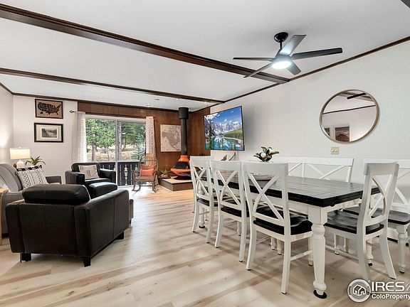Incredible investment opportunity with $85,000 in gross revenue over the past 12 months and a transferable short-term rental license! Even better, you can self-manage to maximize profits-a huge bonus in Estes Park-or choose to use the convenient onsite management.This is the largest unit in the complex with 4 bedrooms, 2 baths, and room to sleep 10 guests. Step out onto any of the four private decks-three overlooking the peaceful river-and take in the unmatched beauty of Estes Park and the Rocky Mountains. Elk are often in the front yard, creating a true Colorado mountain experience, yet you're only one mile from the entrance to Rocky Mountain National Park and just five minutes to downtown.The property features a modern design with a recently updated kitchen, new LVP flooring, and a cozy fireplace. Sold fully furnished, it's completely turn-key for you and your guests. The HOA includes a pool for added enjoyment.Whether you're looking for a high-performing short-term rental or a personal mountain oasis that pays for itself, this one is not to be missed!