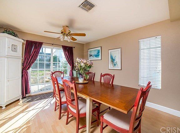 This gorgeous two story home was just built in 1988 and is nestled on a gigantic 10,875 square foot lot that's in one of the nation's safest cities, Simi Valley, and as soon as you lay your eyes on it you're going to recognize the true. Here are just a few of its many other fine features: »Its lush landscaping, sprawling front lawn and vibrant planters enhance its eye catching curb appeal »A flowing 2,206 square foot floor plan that is in with a striking two tone designer paint scheme and many architectural accents »The living room is bathed in natural light from a skylight and a multitude of windows, highlighting the soaring ceiling with lighted fan, maple finished wood flooring, cozy fireplace, and custom staircase »The family's cook is going to truly appreciate the kitchen's abundant tongue and groove custom Thomasville maple cabinets, granite counters with full back splash, stainless steel appliances, durable dual basin stainless steel sink, five burner cook-top with stainless steel ventilation hood, custom contemporary lighting, huge breakfast bar with direct patio access, plus the convenience of the adjoining formal dining room with lighted ceiling fan and direct patio access