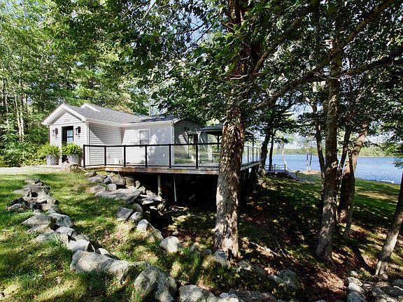 Lakefront Retreat + Proven Income Opportunity! Watch the walkthrough tour now available on YouTube ~ This lakefront gem offers the best of both worlds: a comfortable year-round retreat and a successful short-term rental with Superhost status. With a strong record of consistent bookings and glowing guest reviews, it’s a rare chance to own both lifestyle and income. Inside, soaring vaulted ceilings with wood beams frame the open-concept kitchen and living area, anchored with a floor-to-ceiling stone fireplace. The kitchen features quartz counters, stainless appliances, ample cabinetry, and a cozy breakfast nook—perfect for hosting family or welcoming guests. Two spacious bedrooms and a spa-like bath with double sinks and a walk-in tiled shower complete the main level. The lower level offers flexibility with a bonus space, half bath, and room for storage or a workshop. A wired garage adds convenience for year-round living or secure storage for outdoor gear and water toys. Step outside to 225 feet of pristine shoreline, where a sheltered cove invites safe swimming, kayaking, and paddleboarding. Entertain with ease on the wraparound deck, or unwind on the lakeside sundeck with endless water views. Explore Lake Deception's 17 islands and peaceful landscape right from your own backyard. Whether you seek a private waterfront getaway or a turnkey investment property, this home delivers. Just 12 minutes from Shelburne, it combines convenience with a true escape. Homes like this rarely come available—book your private showing today and experience the lakefront lifestyle firsthand.