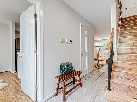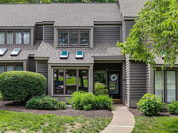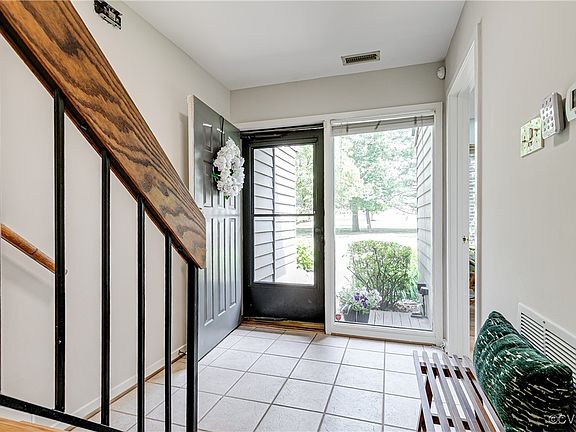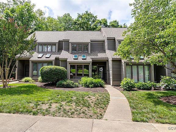 Welcome to this sun-filled and thoughtfully updated 2-bedroom, 2.5-bathroom Townhome offering 1,376 square feet of comfortable living space and tranquil lake views. The inviting front room features dual skylights, perfect as a home office, den, or breakfast area. It flows seamlessly into a well-equipped galley kitchen, spacious dining area, and a striking sunken living room with a cozy wood-burning fireplace and built-in bookcase. Glass door with sidelights and custom shades lead to a private back deck overlooking the lake—ideal for birdwatching, relaxing, or entertaining. A convenient half bath, large pantry and spacious closet complete the main level. Upstairs, the primary suite boasts lake views, two generous closets, and an en-suite bath with a tiled walk-in shower behind glass doors. The second bedroom also offers ample space, a large closet, and its own private bath with tub. A laundry area is conveniently located in the upstairs hall closet with double doors. This home has been freshly painted and features refinished hardwood floors on the main level and brand-new carpet upstairs. Recent updates include a new heat pump and hot water heater. Additional features include two assigned parking spaces, an attached outdoor storage shed, and access to a quiet, friendly and well-maintained community. Community association fees cover exterior maintenance (including the roof), landscaping, and trash pickup. Enjoy peaceful lakeside living with an inviting community dock and pergola, all just 8 minutes from the shops, dining, and amenities of Short Pump Town Center.