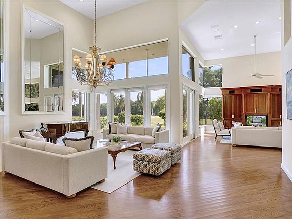 Nestled on one of the most coveted PANORAMIC PREMIUM GOLF & LAKE lots in all of Weston Hills, this magnificent home sits on a cul-de-sac in the exclusive boutique enclave of The Fairways. A long paver driveway, flanked by high privacy hedges, leads to 3600SF of timeless elegance with soaring 20-foot ceilings & breathtaking wraparound views of the TOUR COURSE through floor-to-ceiling glass walls that seamlessly connect the grand interior to the stunning surroundings. Primary & custom den downstairs; upstairs, 2BD w/bath. Exquisite chandeliers, custom mirrors, solid hardwood flooring, plantation shutters, double-sided fireplace. NEW UPDATES incl BRAND NEW IMPACT sliding glass doors & plank floors (Fall 2025), 2024 tankless WH, 2024 flat roofs, 3 NEW AC units, plumbing, $25K landscape & more! The thoughtfully designed 4Bed (including custom built-in office), 3 Bath, 2CG was designed to bring the outdoors in, where walls of glass seamlessly connect the interior to the stunning surroundings. Downstairs, the spacious primary suite features new luxury plank flooring, custom closets, a double-sided marble fireplace and sitting room that overlooks the fairways, as well as a spa-like marble primary bathroom ensuite. The 4th Bedroom, also downstairs, is outfitted as a beautiful home office, with custom solid wood cabinetry and shelving, and a large walk-in closet, with adjacent bathroom. On the upper level are two huge bedrooms, both adjoined by a spacious bathroom.