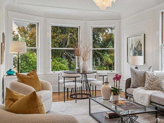 Sun-drenched top-floor corner unit with no shared walls, private garage parking, and access to a poolside backyard retreat. This rare top-floor corner unit has no shared walls, offering exceptional privacy and natural light from windows on three sides. The home blends timeless period details with tasteful modern upgrades: gleaming hardwood floors, built-in bookcases, a working fireplace, and a fully remodeled kitchen featuring Caesarstone quartz countertops, shaker-style cabinetry, vintage built-ins, a generous pantry, and new stainless appliances. Both bedrooms are spacious and sunlit, with abundant closet space. The Ann Sacks tile bathroom is complemented by Waterworks fixtures. Full-size in-unit washer/dryer. With Alta Plaza Park and Fillmore Street just steps away, this 2-bedroom condo offers an unbeatable mix of location, lifestyle, and long-term value.