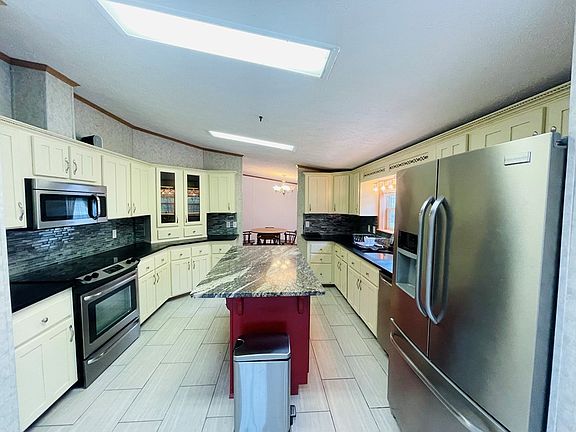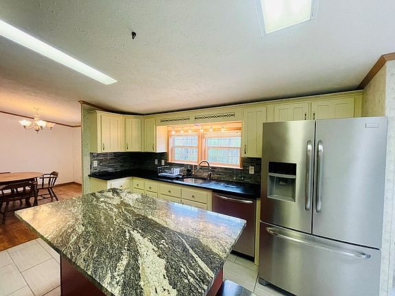 Serene Retreat! This ranch style manufactured home is situated on 1.5 acres of land surrounded by woods, providing plenty of space& privacy. Inside the home, you'll find a beautifully remodeled kitchen w a functional island w granite countertop, tiled backsplash, there is an eat-in area, + a dining room for larger gatherings. Newer floors in the dining room that continues through the living room. Sunken Family Room w a stone fireplace, gives extra living space. Grand master suite has great closet space, a master bath to unwind & relax in the soaking tub. 2 add'l bedrooms with large closets & a full bath. Laundry room & a 1/2 bath off the side steps for quick clean up. The outdoor space is the highlight of the property, with trex deck out front & a spectacular back deck with screened gazebo perfect for outdoor entertaining or picnic style dinner. The deck overlooks the beautiful and expansive yard, providing a picturesque view for all to enjoy! PRICED TO SELL!