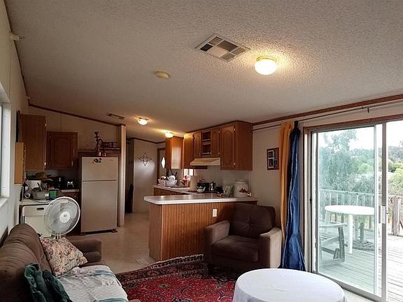 MANUFACTURED HOME ON LAND, PARTIAL HOME- HALF/ONE PORTION OF A MANUFACTURED HOME WITH VARIOUS FRUIT TREES. DECK LOOKS OUT TO PASTORAL VIEWS. DISTRICT AND WELL WATER,HOWEVER WELL RECENTLY WENT DRY PER SELLER. SELLER HAS BEEN USING DISTRICT WATER. BUYER SHOULD GET A WELL REPORT FROM A CERTIFIED CO. NICE SHADE TREE WITH A SOLIDLY BUILT "FORT" PLAYHOUSE. PER SELLER, MANUFACTURED HOME IS SALVAGE TITLE AND NOT ON PERMANENT FOUNDATION. BUYER TO VERIFY ANY PERMITS OR LACK OF PERMITS/REGISTRATION AND TITLE ON FILE WITH COUNTY AND DMV. SECOND PARCEL IS SMALL STRIP OF DRIVEWAY ACCESS