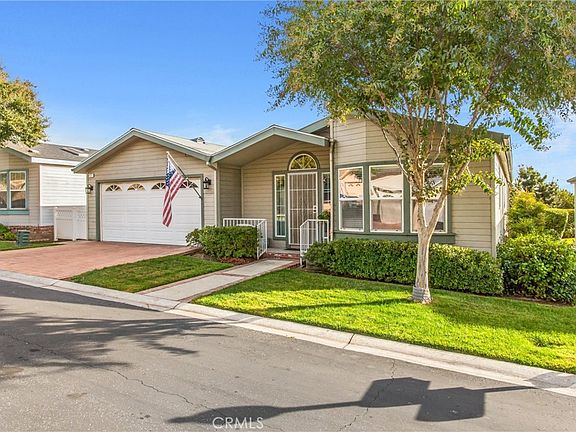 Welcome to this Beautiful home located in Valencia Lea 55+ park. It is one of the most prestigious areas it is nestled at the base of the gorgeous San Bernardino mountains close to shopping centers, freeways , Restaurant's and Costco. This charming home has 1392 sq ft with 2 bedrooms with an extra room used for and office or etc. Spacious living room, Kitchen has granite counters tops and great view of the mountains from the Kitchen Window.Dining is off the Kitchen area. The primary room has a walk-in closet, primary bathroom offers walk-in bathtub. For your convenience there is an indoor laundry room with storage cabinets, there are fans throughout, recessed lighting skylights and vaulted ceiling. Security door on the front door. Slider door leading out to the large covered patio great for relaxing or entertaining and the sound of the pond near by.Enjoy the amenities pool, spa, 2 club houses, Library, fitness room, creeks, ponds, walking trails and putting green. This house is in a great location..MUST SEE !