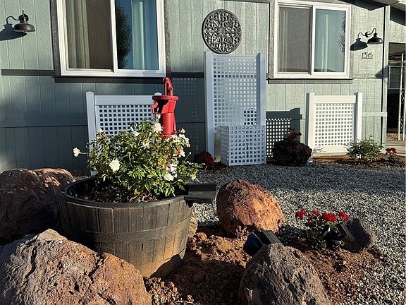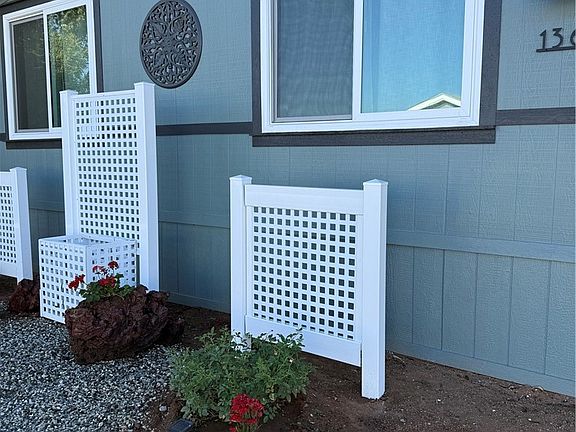 EXPERIENCE the cozy living in this modern farmhouse style remodeled, 1975 Fleetwood double wide, 2 bedroom, 2 bath, home located in the sought-after 55+ gated community within the Sun City Mobile Estates. The home offers a welcoming comfortable living. The heart of the home is bright and light with the open concept kitchen, dining, living area. Throughout the home is luxury vinyl flooring. The kitchen is equipped all new stainless steel appliances, along with soft-closing new shaker cabinets, white washed Butcher block counters which makes a very functional kitchen. The Primary bedroom offers his and her closets, with built in drawers for plenty of storage. The Primary bathroom is adjacent to the bedroom with a walk-in shower. The Primary bathroom has been update with a new vanity top & shaker cabinet. The home comes with a washer & dryer within its own laundry room. The home's curb appeal has rock landscaping with lattice and roses. The large lot in the backyard has a gazebo with plenty of room for entertaining and out door living. Some of the updates include a new roof, double pane windows, front porch carpeting. This home is located a short distance away from shopping and restaurants. The park offers many amenities, clubhouse, pool/spa, and along with social activities. Don't miss out on this lovely home!