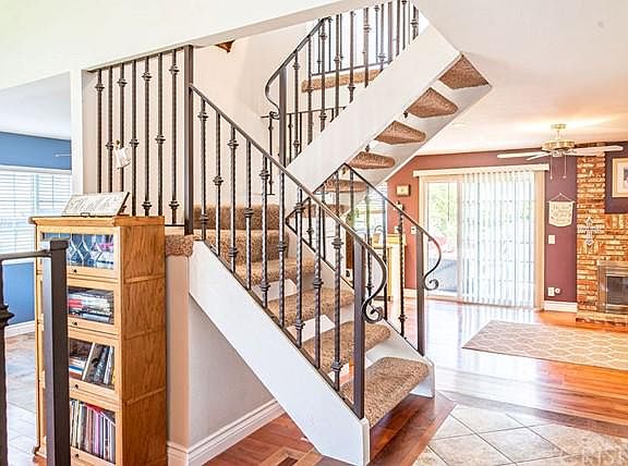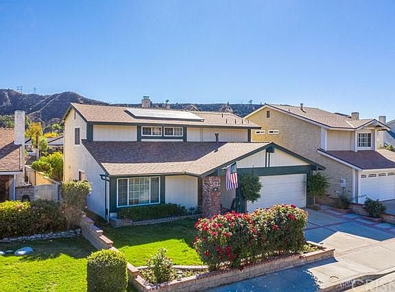 Model sharp, 4 bedroom home in Saugus. The remodeled kitchen has custom cabinets, granite countertops installed this year, newer stainless appliances and neutral tile floors. Tasteful touches include canned lighting downstairs, engineered wood floors, custom paint, dual pane windows and a terrific bathroom remodel. This floorplan offers a bedroom downstairs that makes a great home office space, or a space for overnight guests. Upstairs offers 3 more bedrooms, including the master bedroom. The two secondary bedrooms offer a shared bathroom in between. The master bathroom has been beautifully remodeled with a modern concrete countertop and custom cabinetry and tasteful tile. 2 car garage with lots of storage and cabinets. The backyard was just completed with a terrific remodel which includes a covered patio space, stone pavers as hardscape, firepit and built in BBQ space. Its a great entertainer's yard! You will enjoy the privacy with no neighbors, mountain views plus lemon & orange trees. Walking distance to schools and park! LOW HOA and NO MELLO ROOS!
